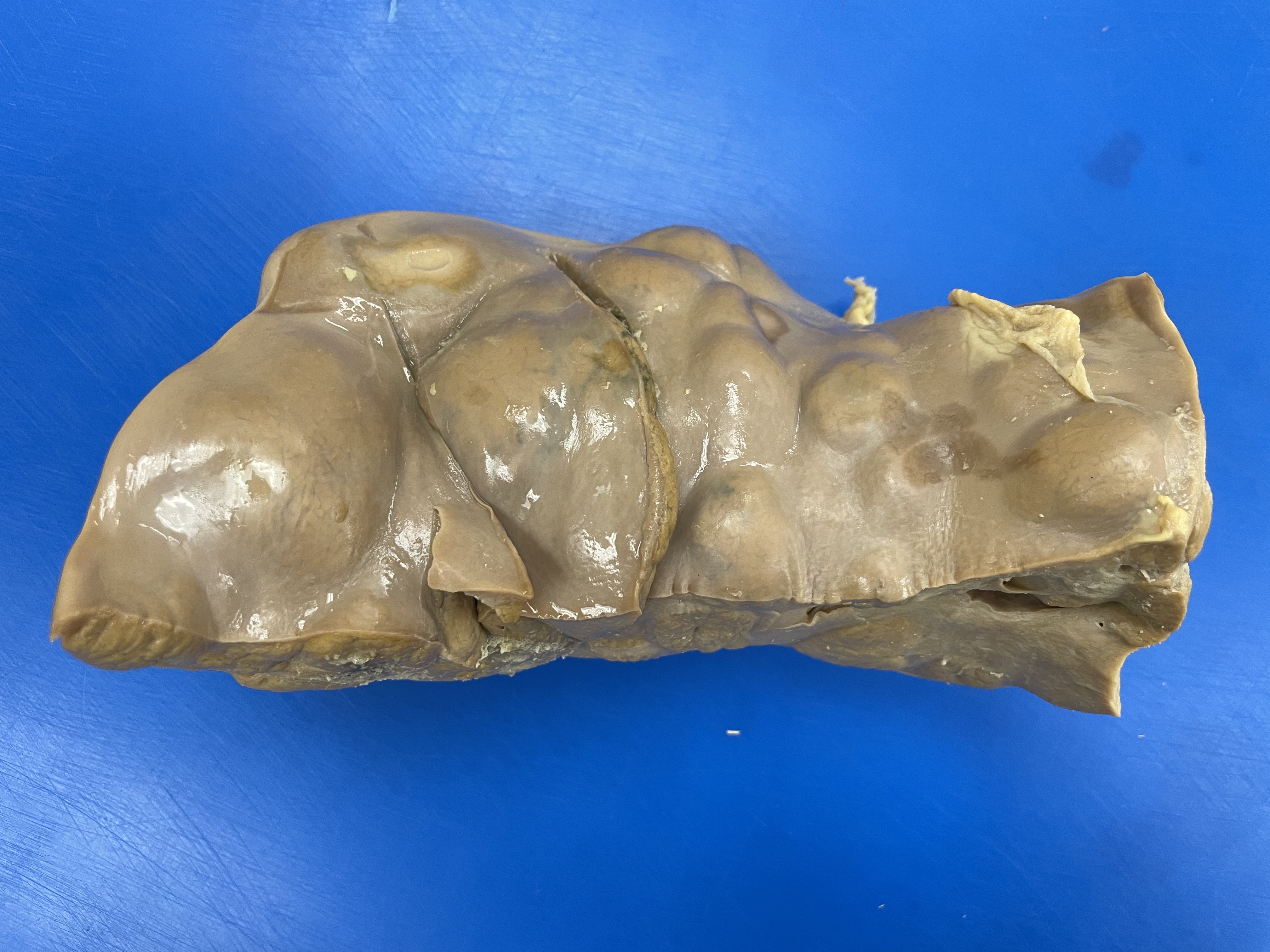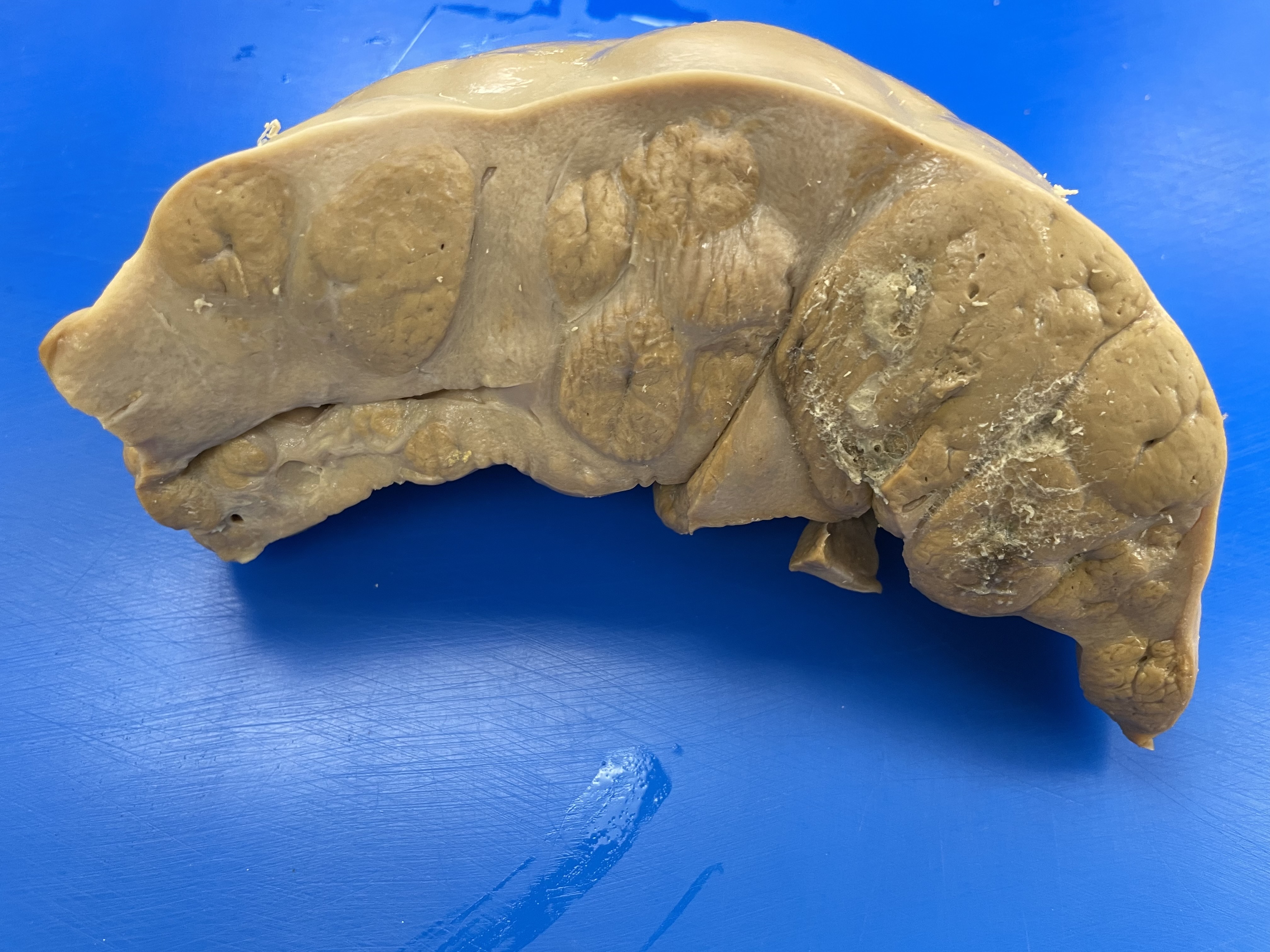 View of the cut surface. Note the nodular appearance.